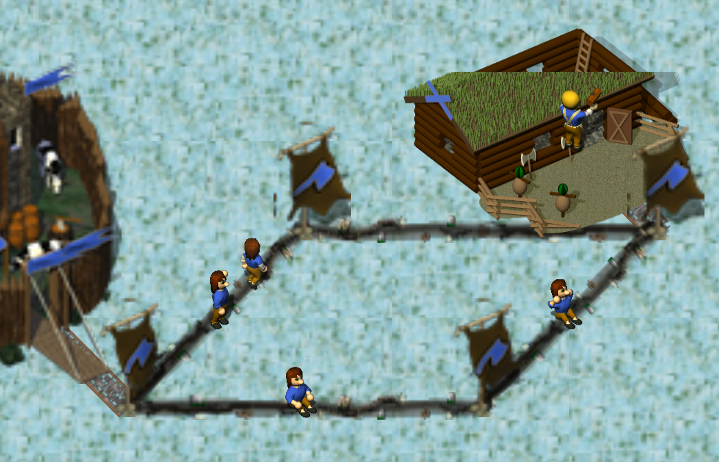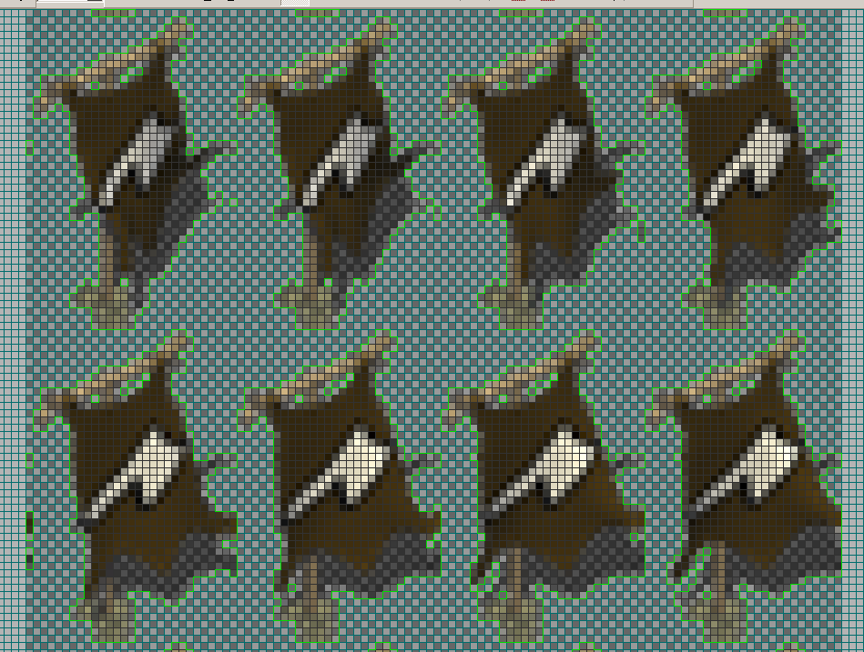 The lighter ground in front of the new Barbarian barracks made a problem with the Barbarian flag visible. The loose end of the flag kind of "wraps around" to the left edge of the image in some animation phases. Also, the flagpole base "wraps around" to the top:
