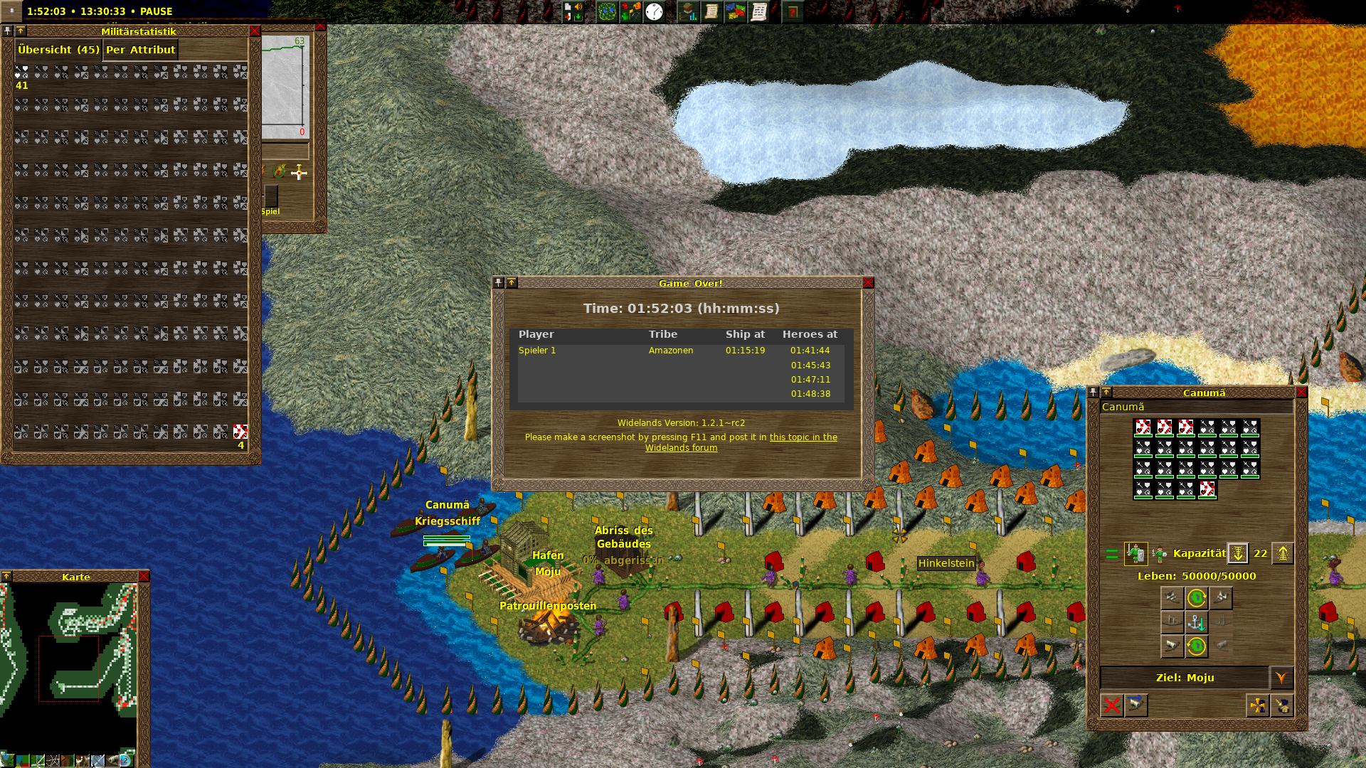 Oh, I'm pretty sure he can do it in around 1:50. Amazons are much easier than Atlanteans after all. Though in this tournament challenge the expansion speed is the primary limiting factor (except for maybe the Empire), and with the similar cost of the small military buildings the tribes should be mostly equal. If I'm not mistaken in that, then Barbarians with their buildcost of only 2 wares should have the fastest times, so we'll see. For WorldSavior's strategy, the buildcost of warehouses also matters, but I don't know how that compares between tribes.